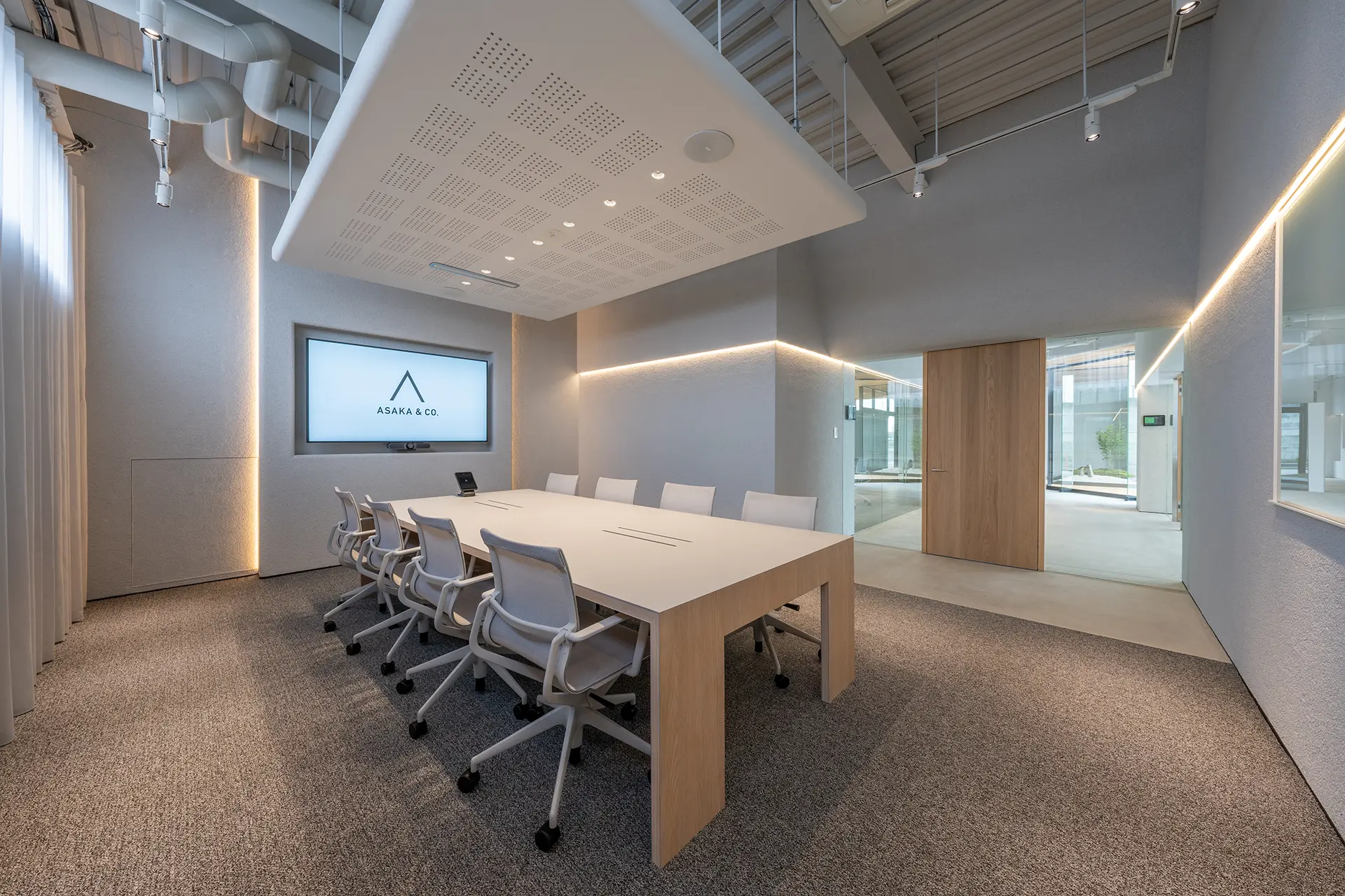 操作はタッチパネルに集約され、会議の準備や切り替えに煩わされることなく、参加者全員が議論そのものに集中できる空間です。